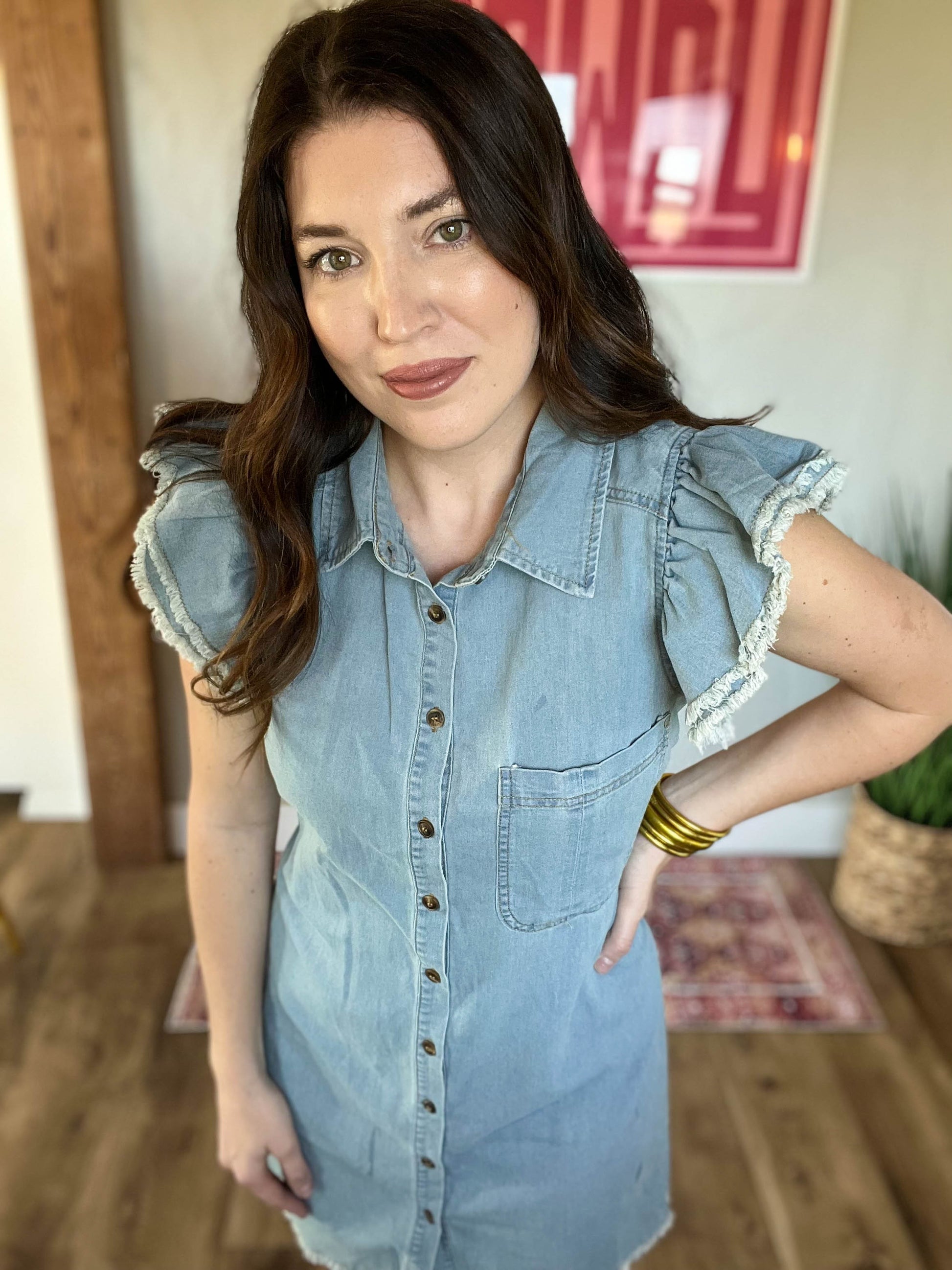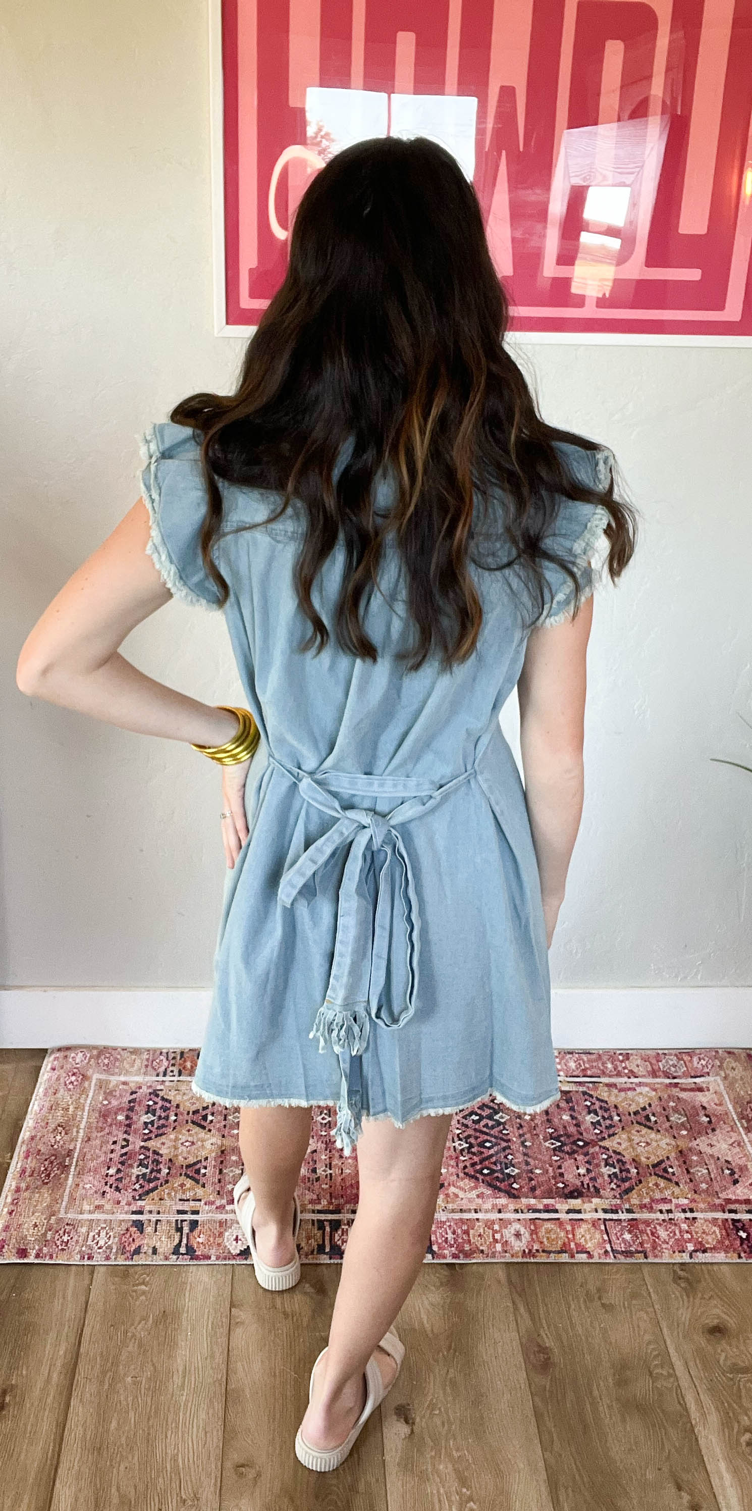 Such a flattering dress. I have it tied in the back for a more fitted look but can be tied in front as well!