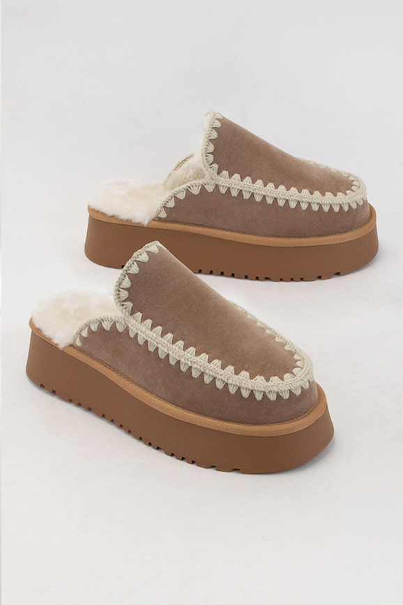 -PLATFORMED FUR SHEARLING SLIP-ON SLIDE