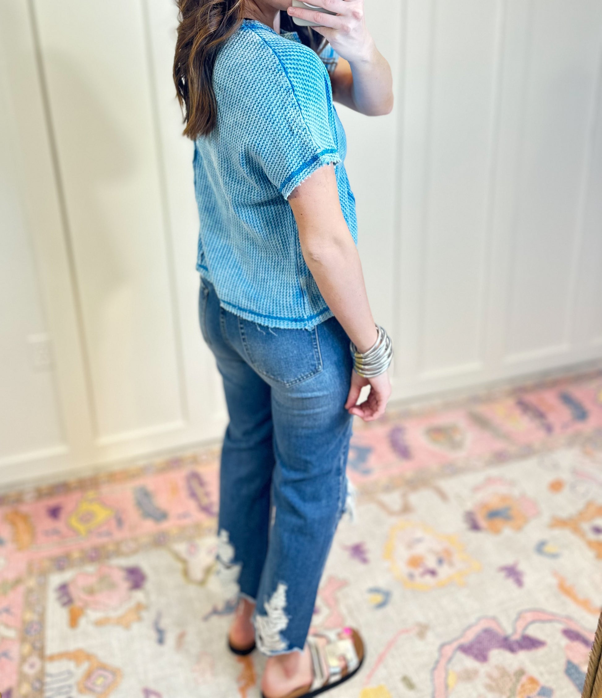 Feel Good Waffle Tee - Deep Sky