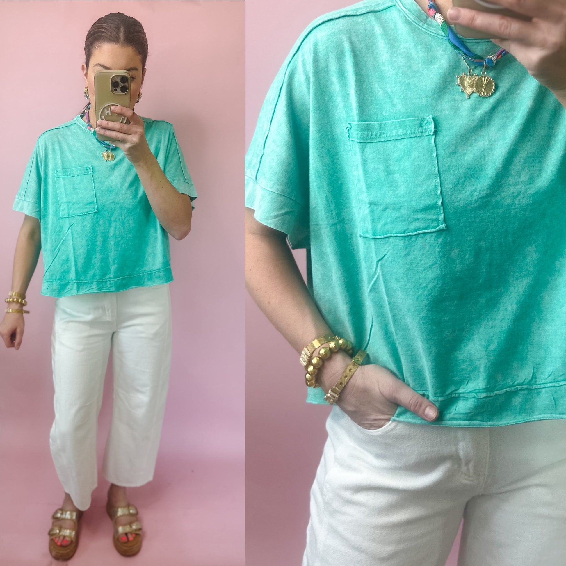 Crop fit, washed color, absolutely adorable.
