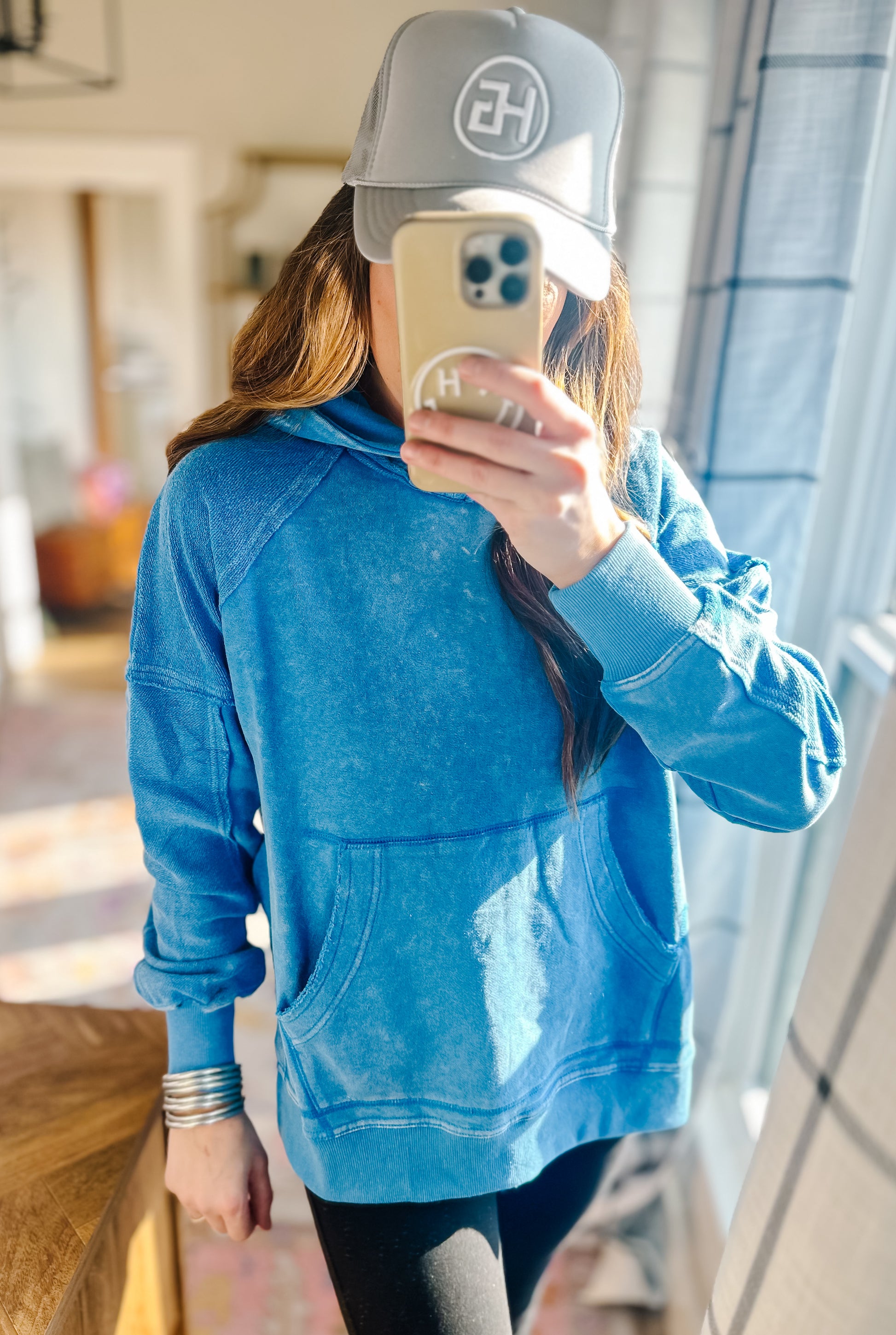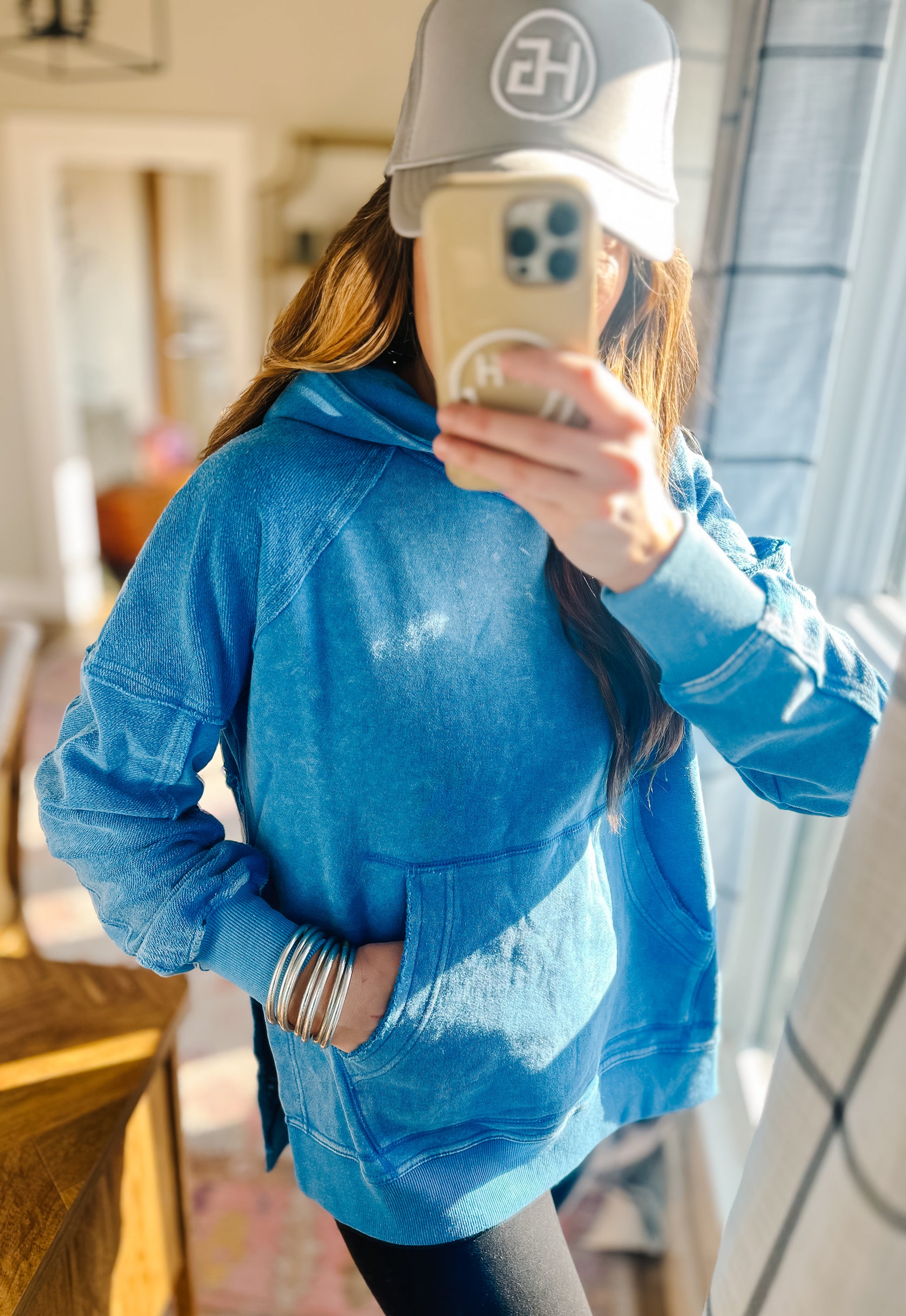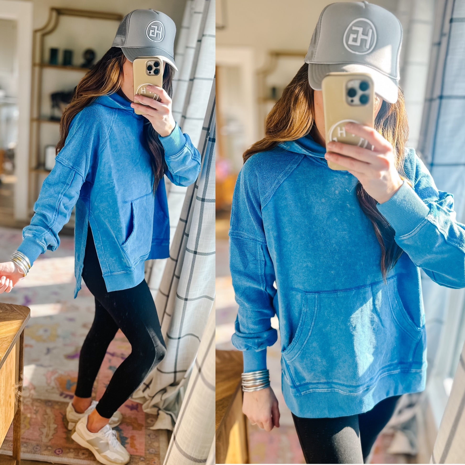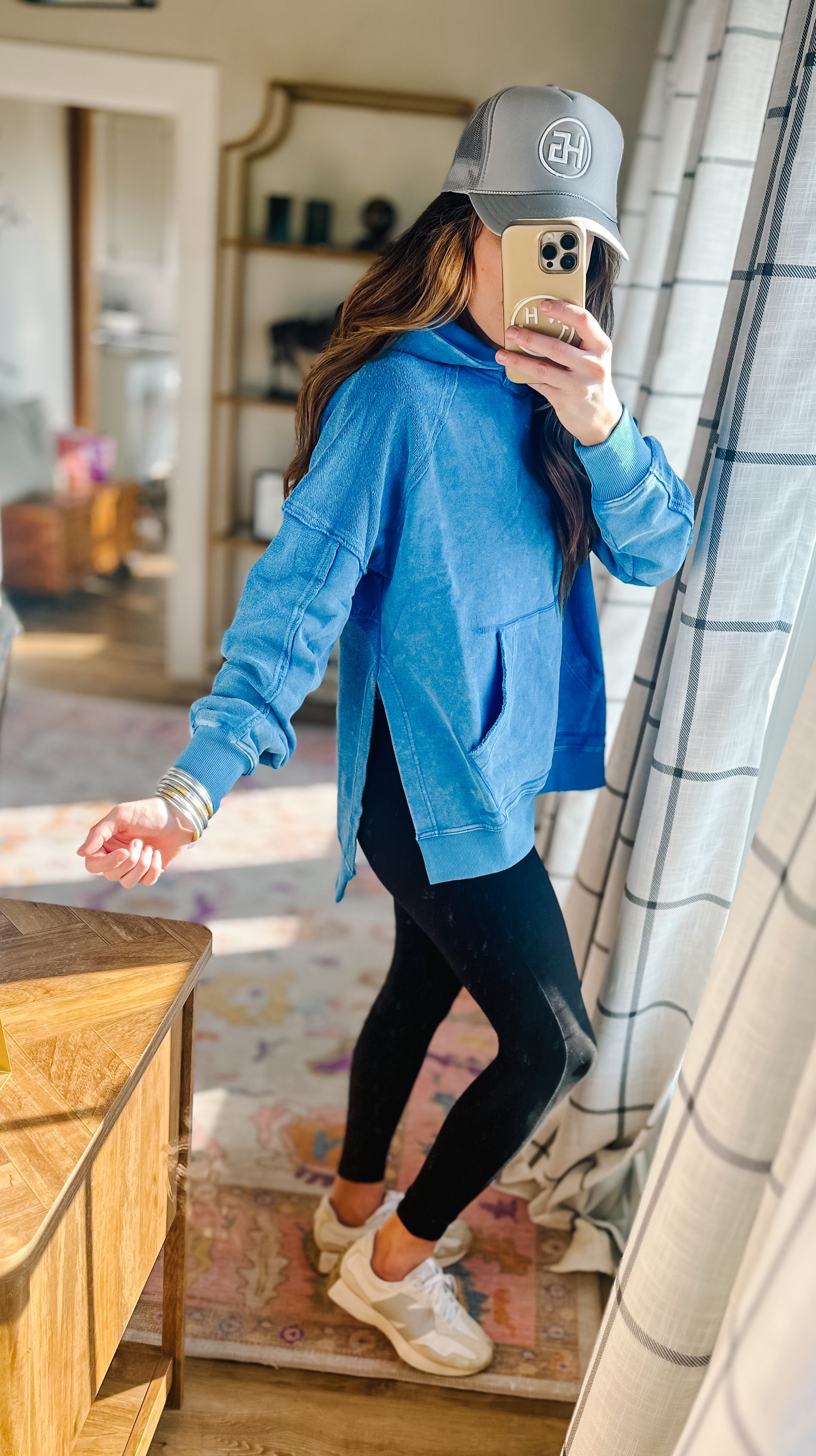 Back in a gorgeous cobalt blue color, side slits, washed looked.
