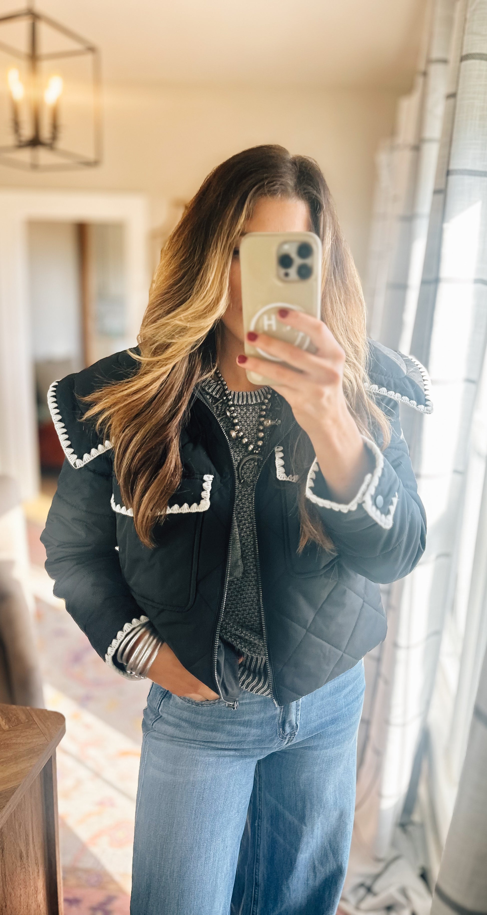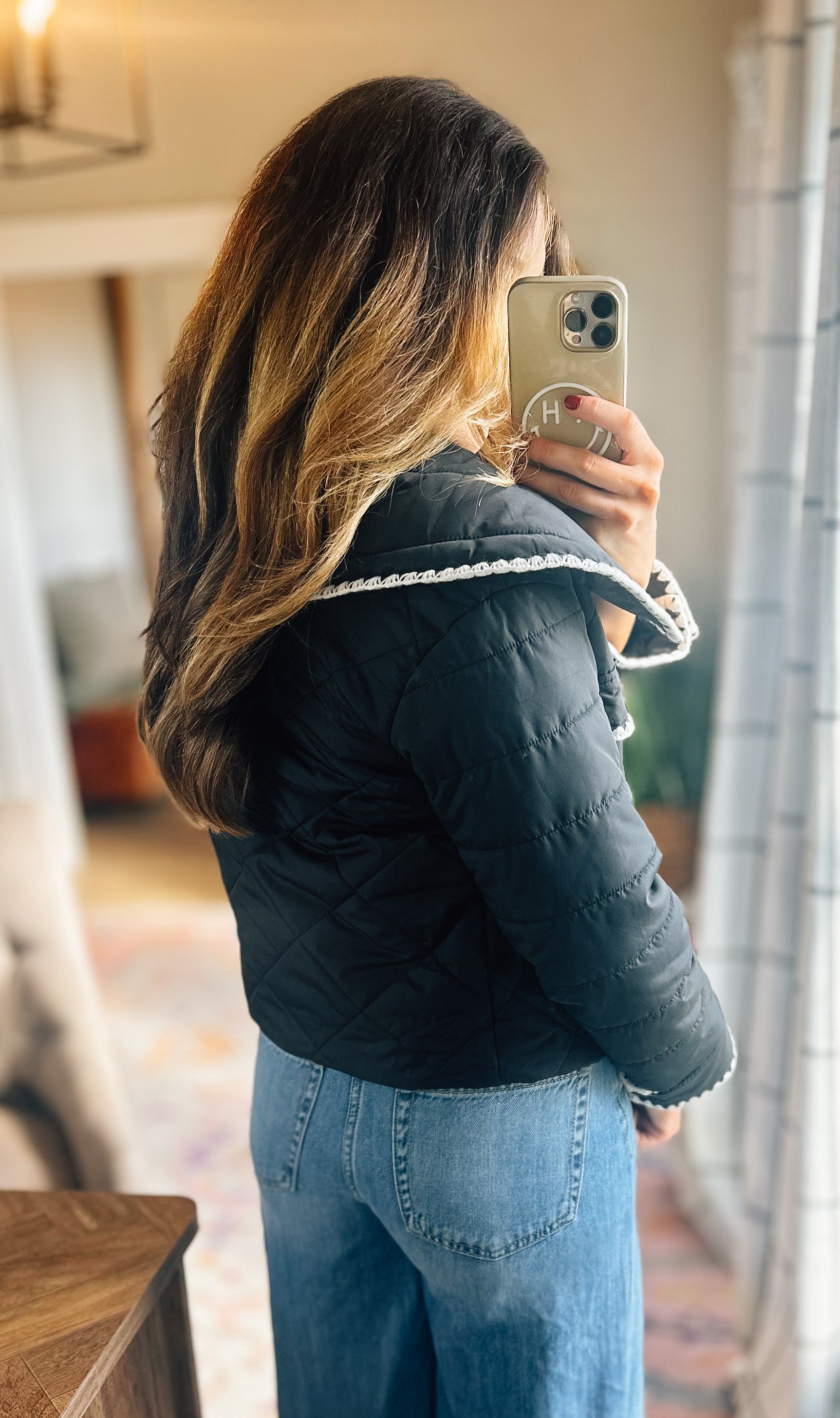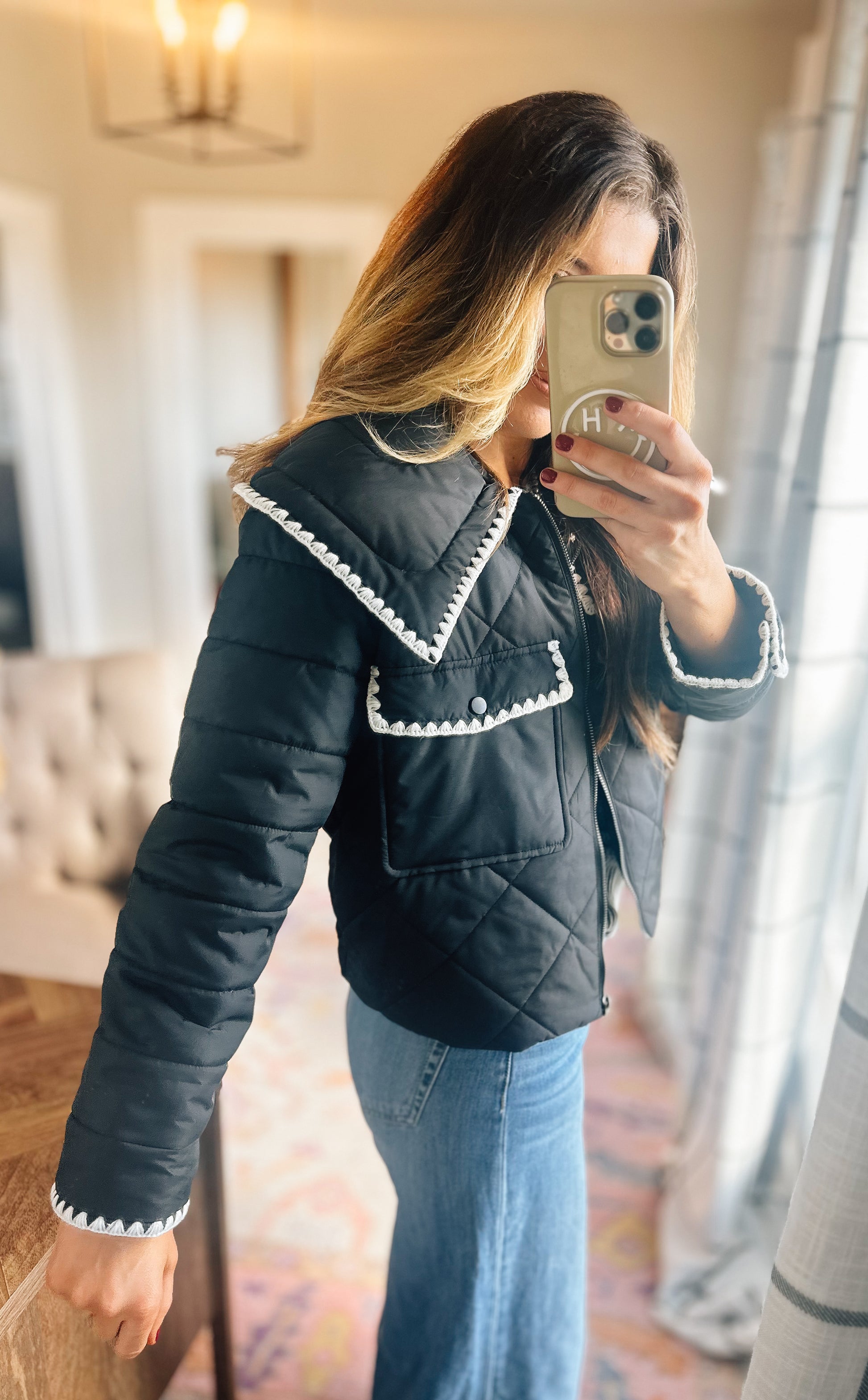 Black quilted puffer jacket!
