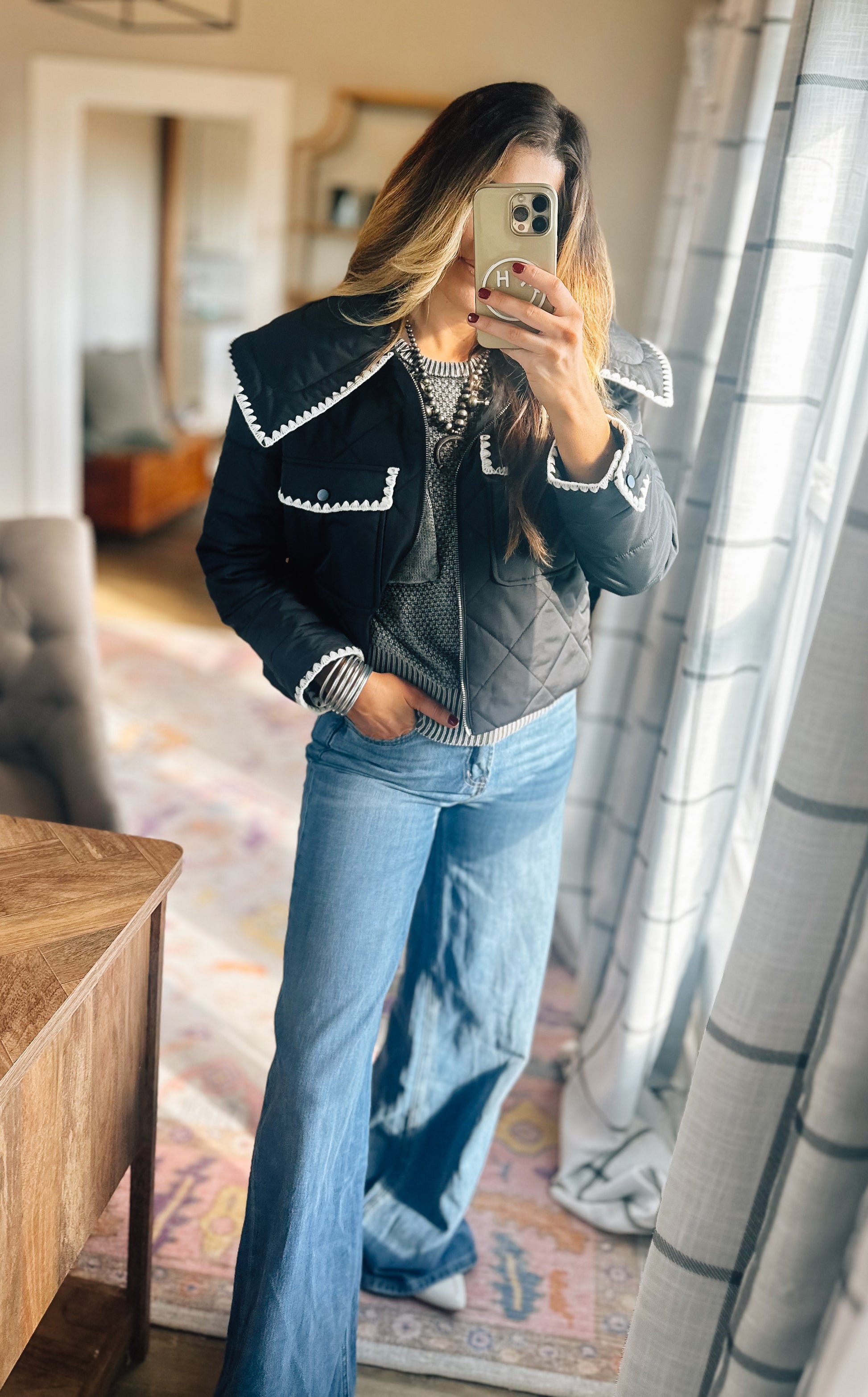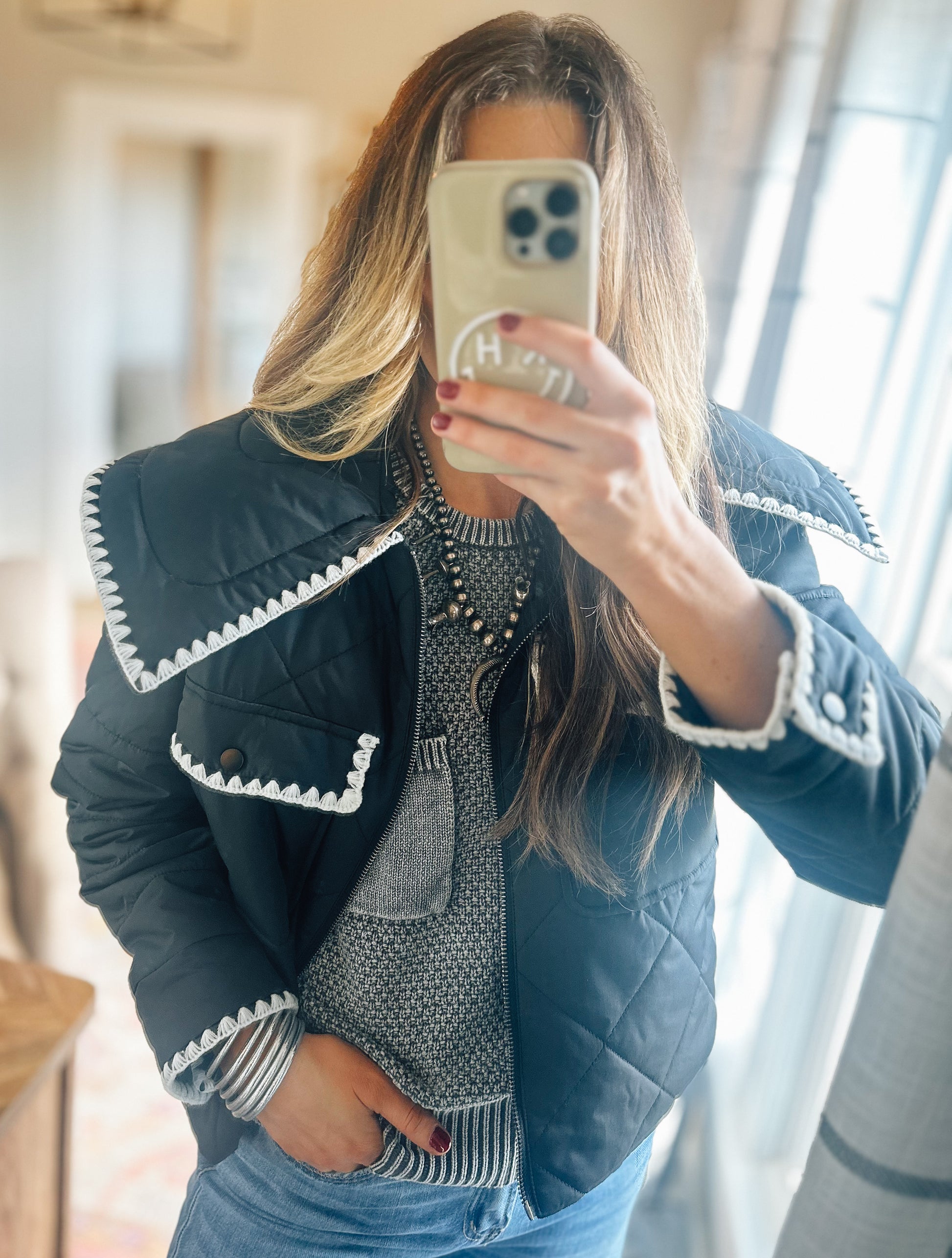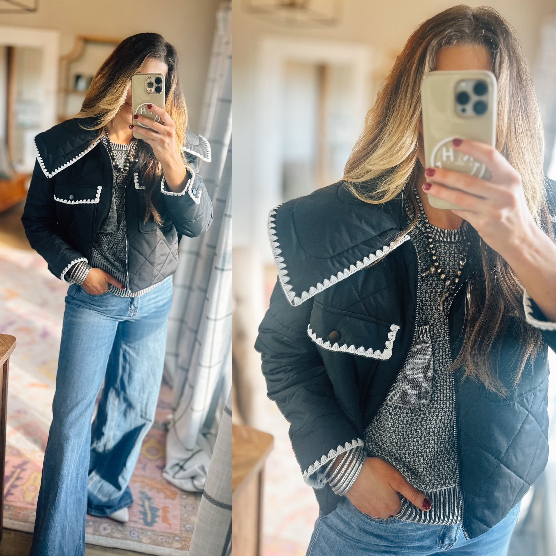 Black quilted puffer jacket!