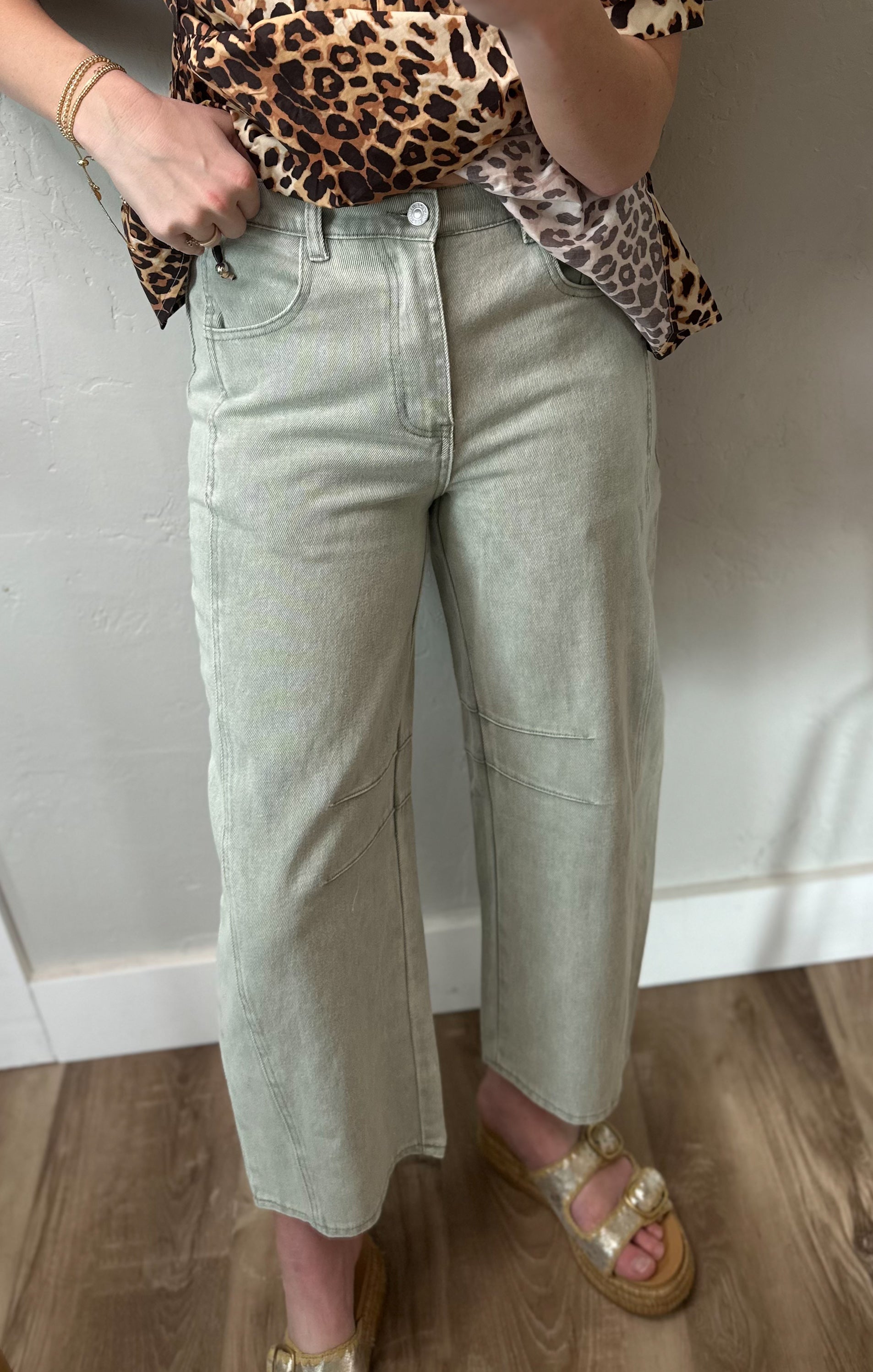 OBSESSED!!! Green barrel jeans!