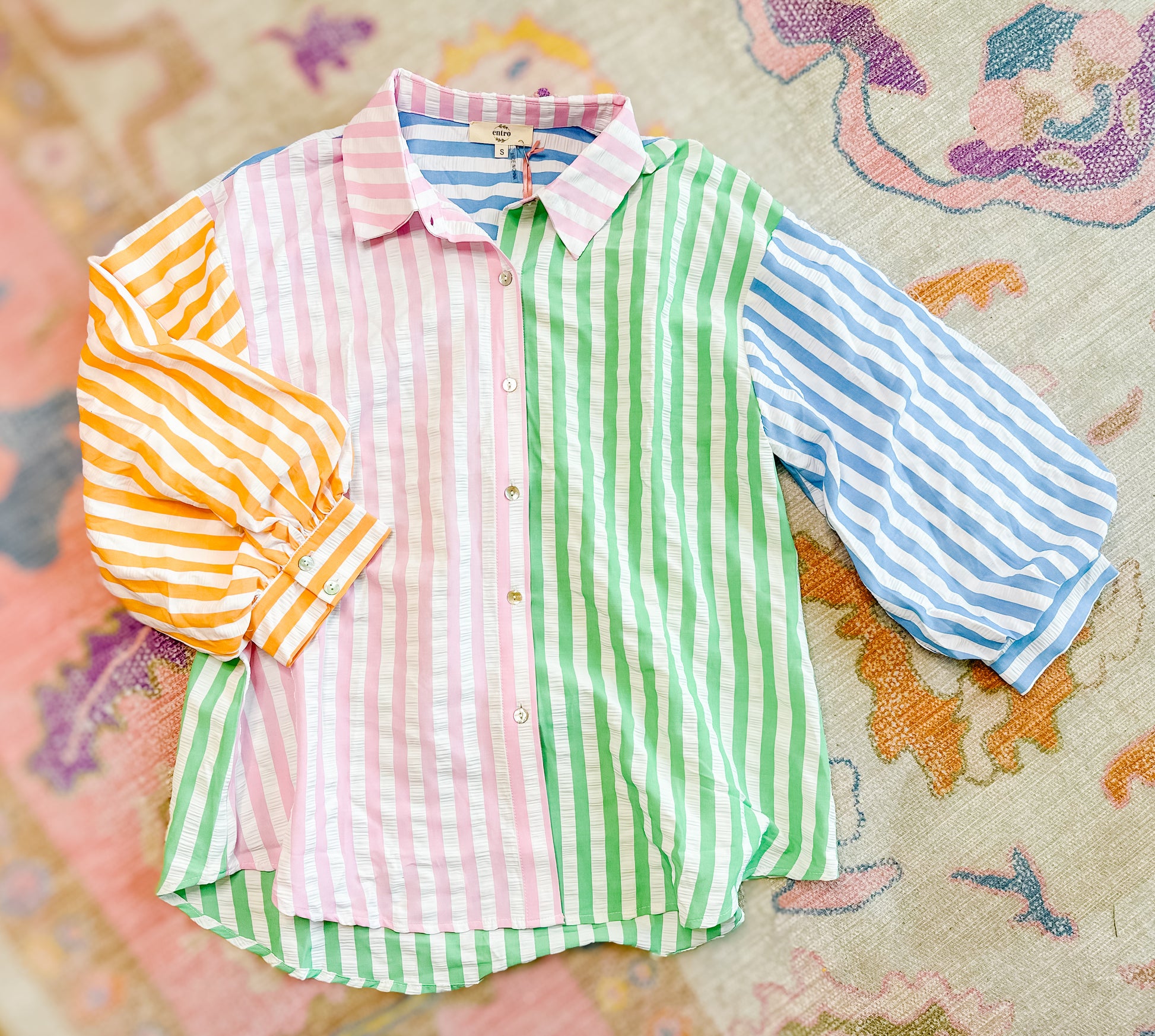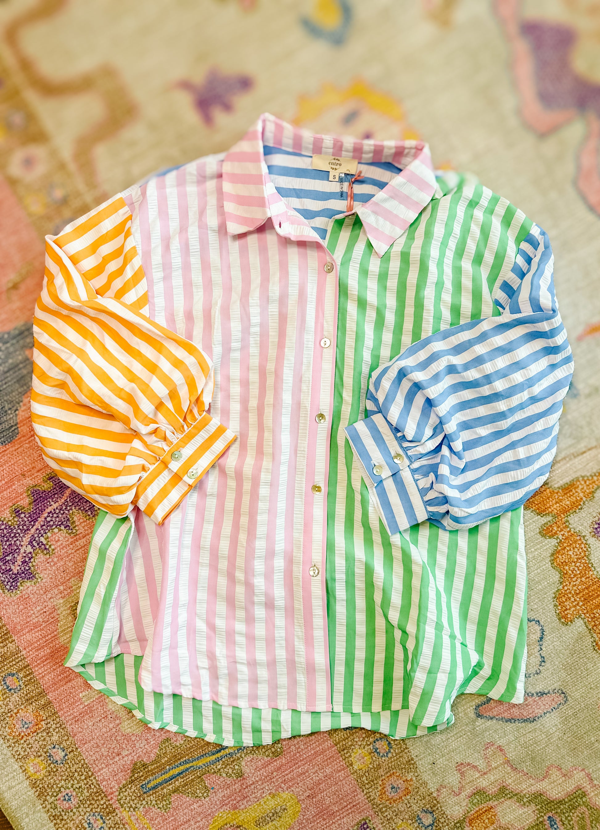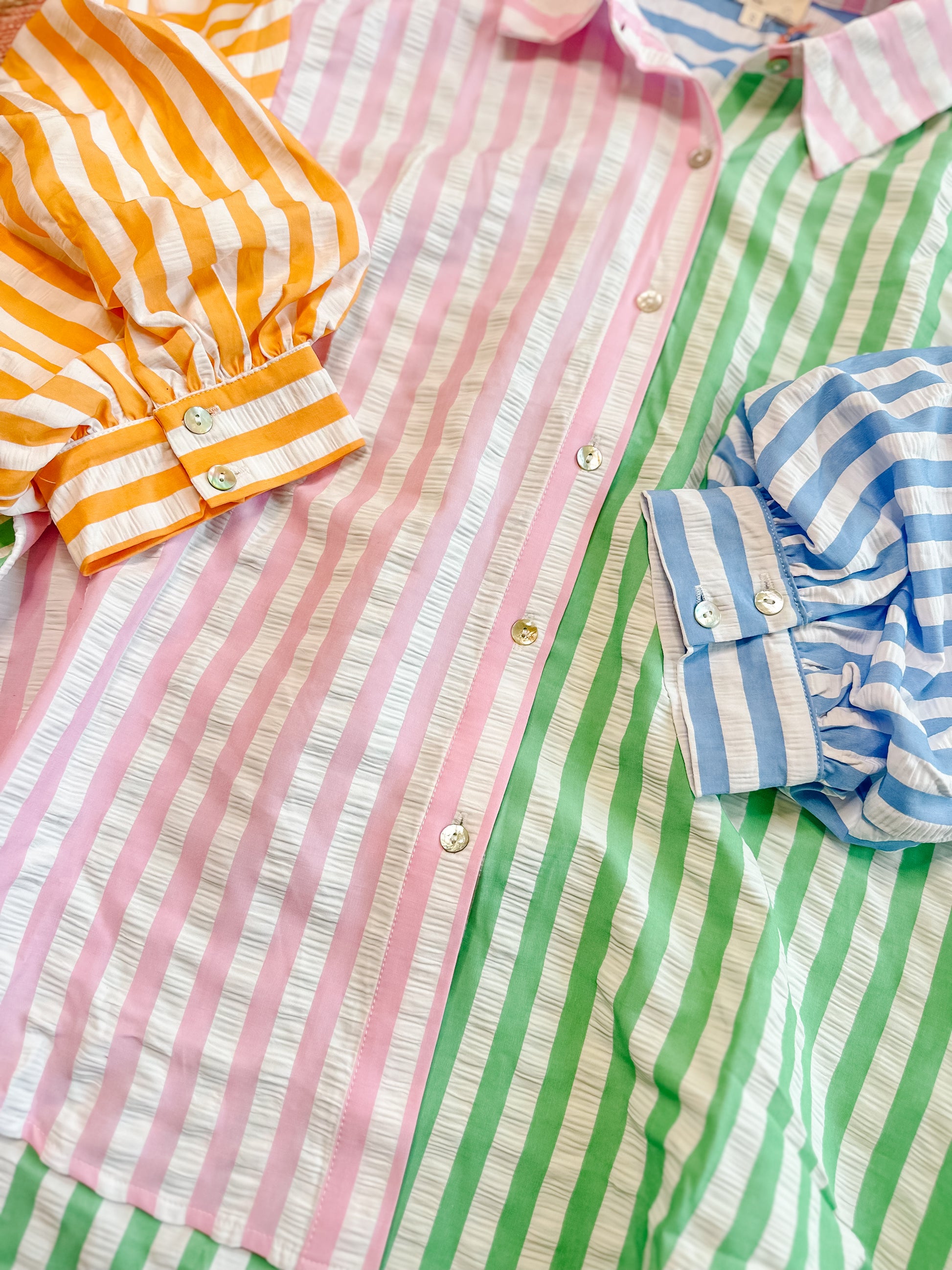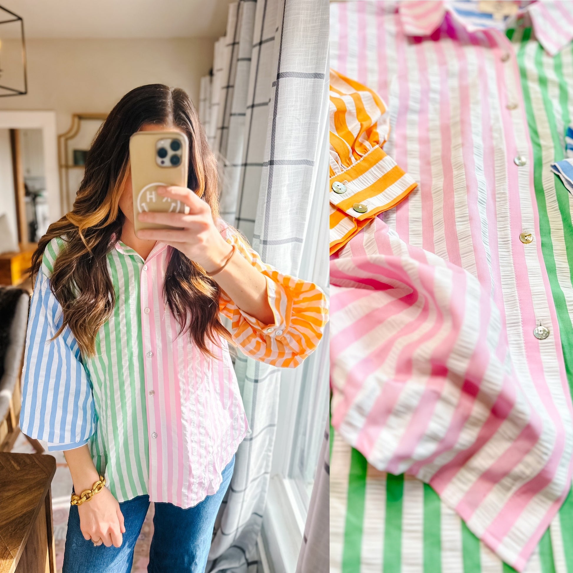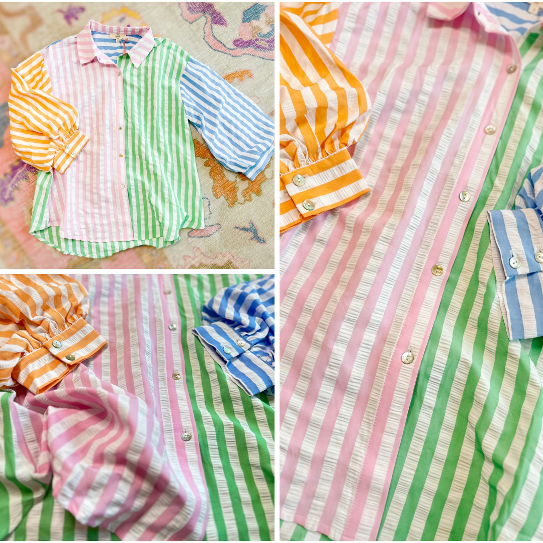Colorblock button down with the cutest texture!