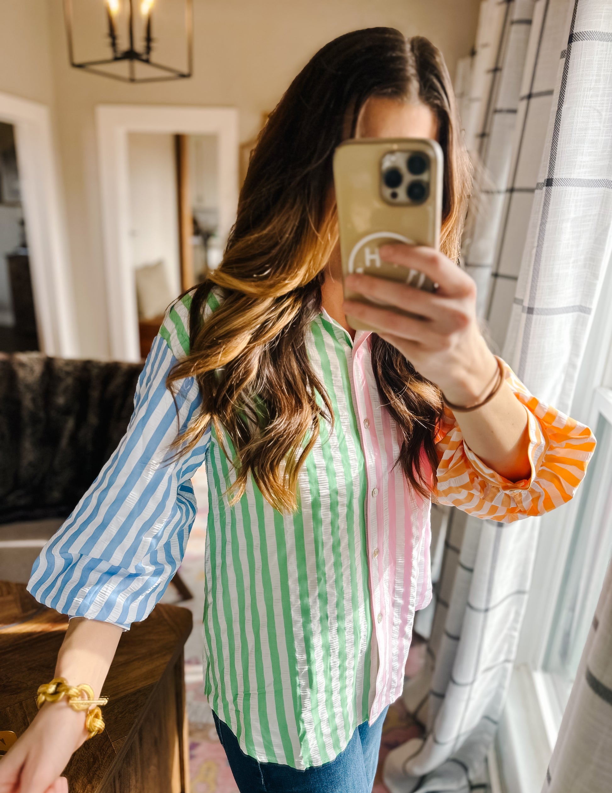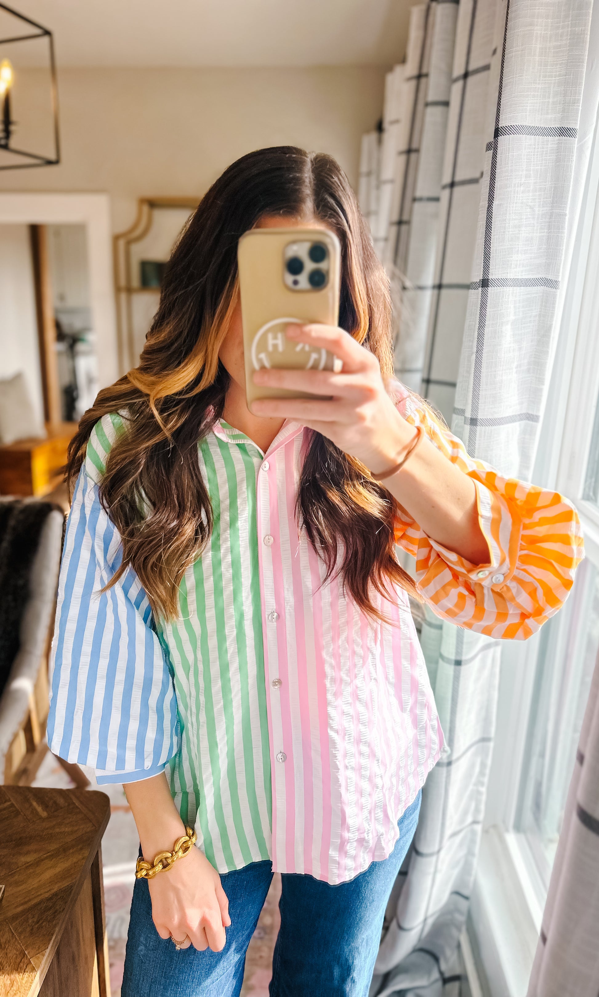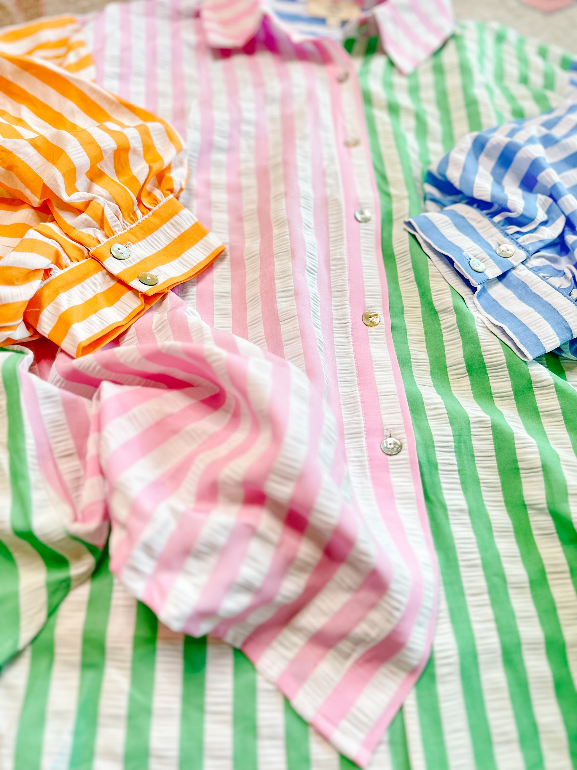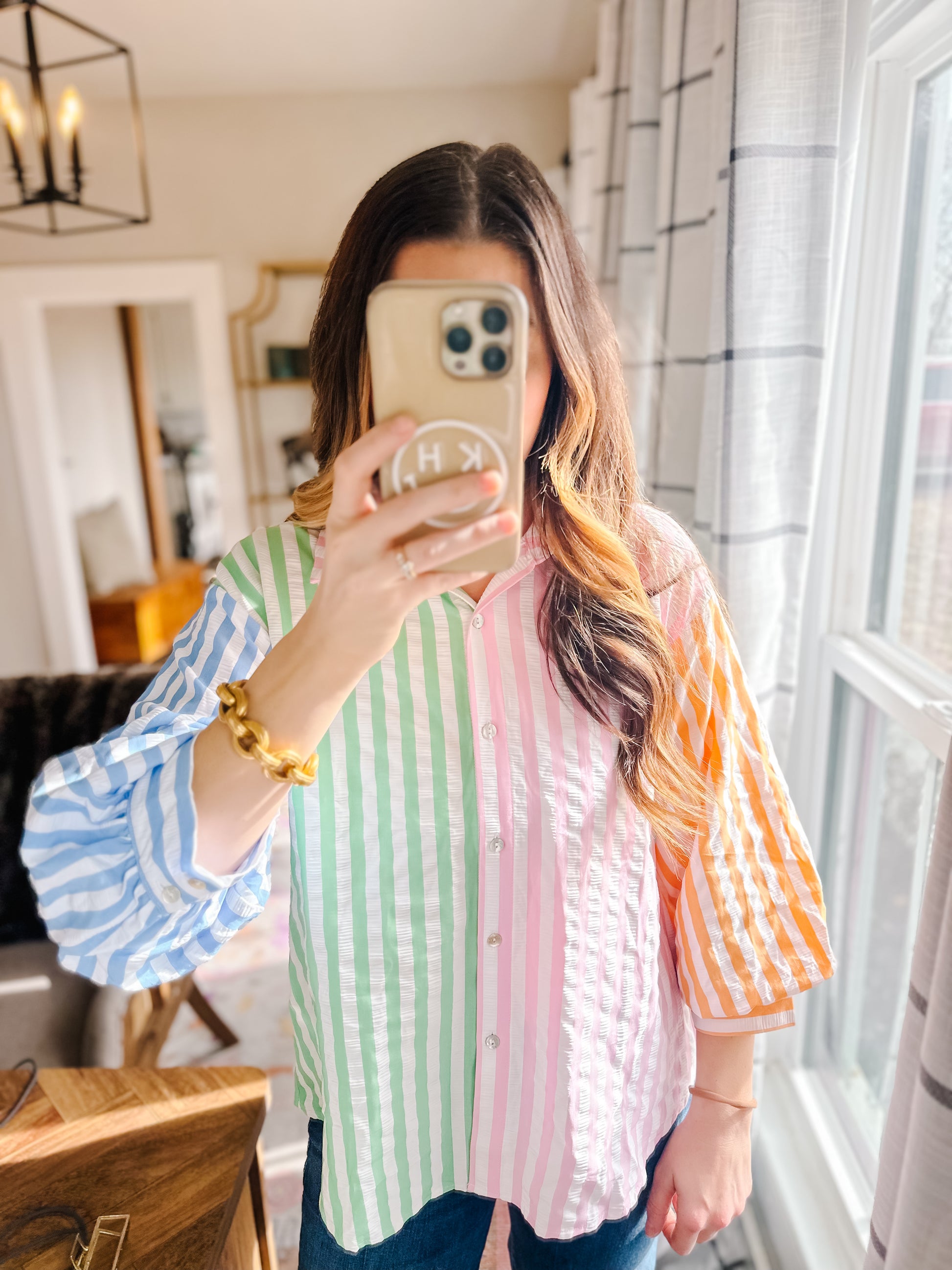 Colorblock button down with the cutest texture!