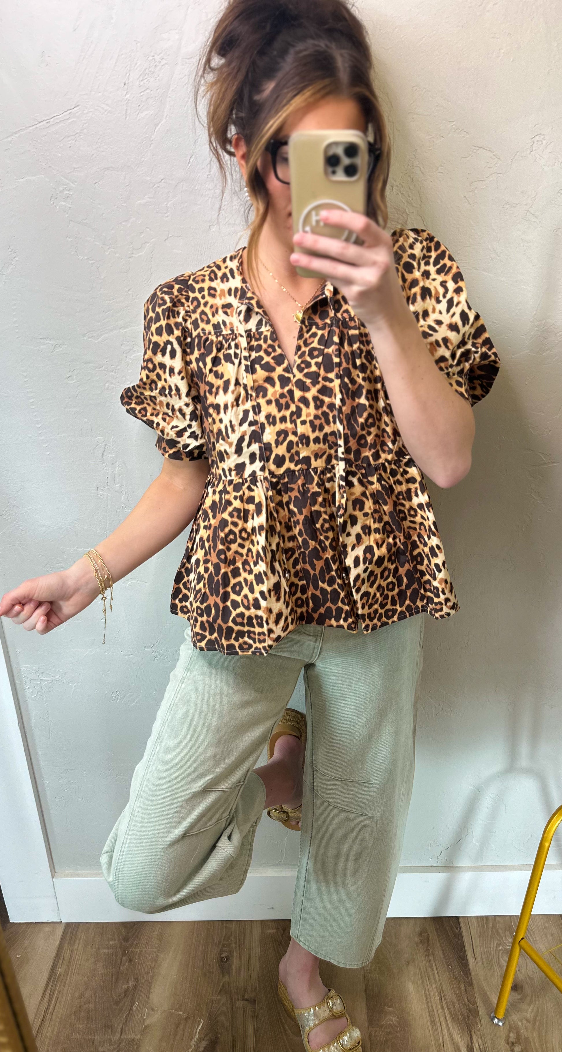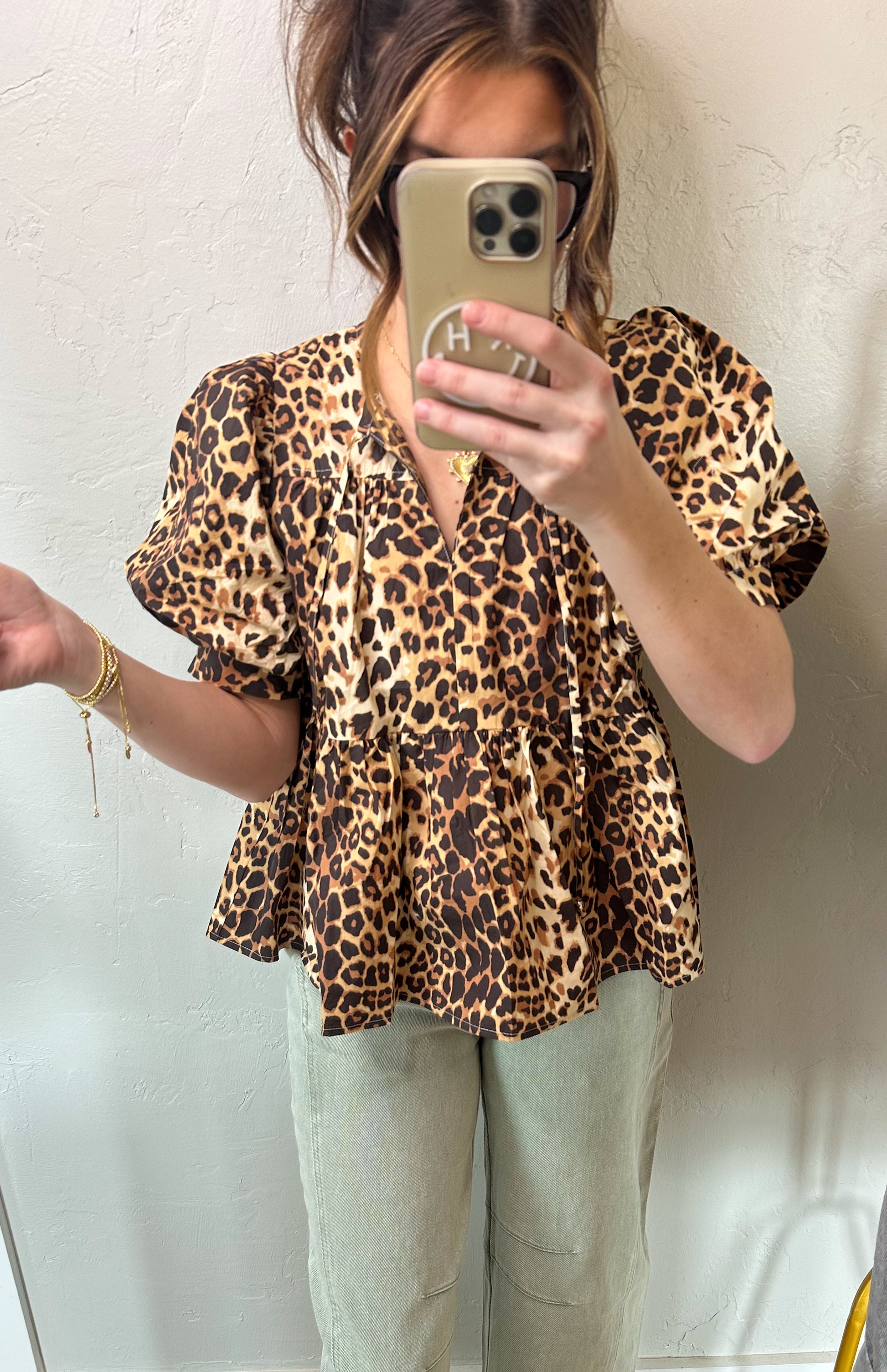 Cute leopard top! Babydoll fit and adorable puff sleeves!