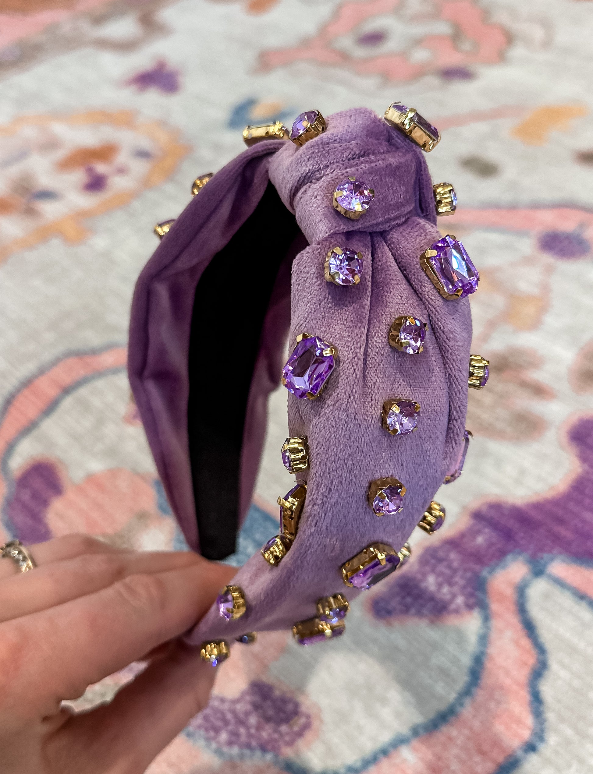 -GLASS STONE EMBELLISHED VELVET HEADBAND