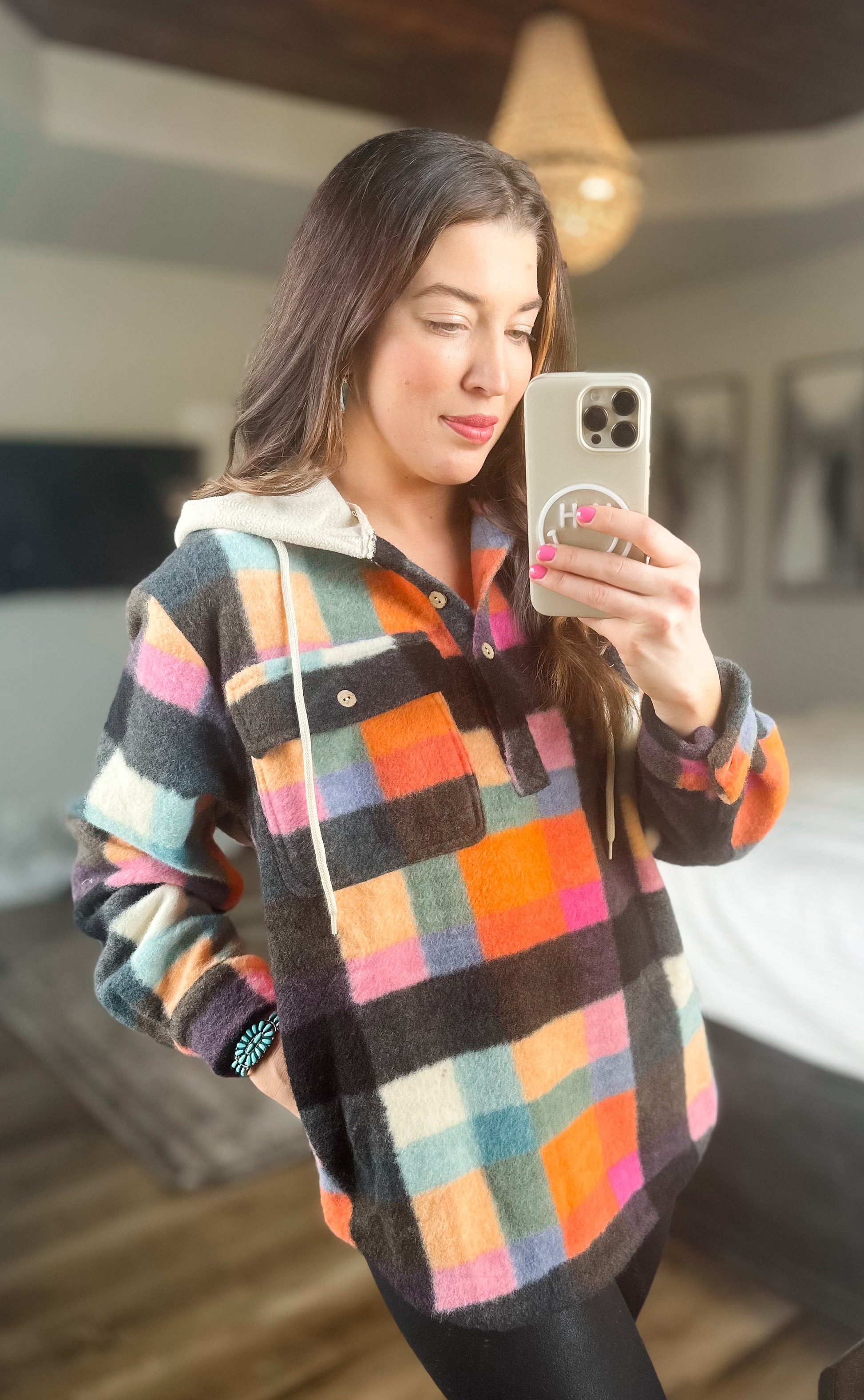 -VINTAGE BRUSHED FLEECE CHECKER HOODIE
